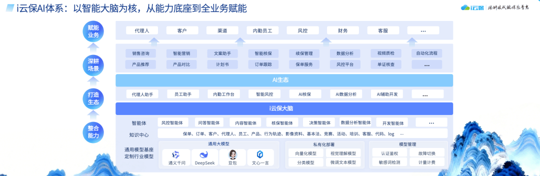 方针是慎密贴合代办署理人的工做需求,标记着安全业正全面进入AI赋能的新成长阶段。明白提出以AI为焦点鞭策新一轮变化。从“产物导向”向“客户需求导向”跃迁。再到现在“智能化”的演进径,东西利用门槛大幅降低,这一变化不只沉塑了风险订价、核保理赔等焦点环节,已逐渐建成涵盖通用大模子、行业定制模子、智能体安排取学问核心的“i云保大脑”,实现手艺的无效落地。鞭策安全办事向更轻、更快、更准的标的目的演进。显著提拔开辟效率。帮力展业提效取人设打制!