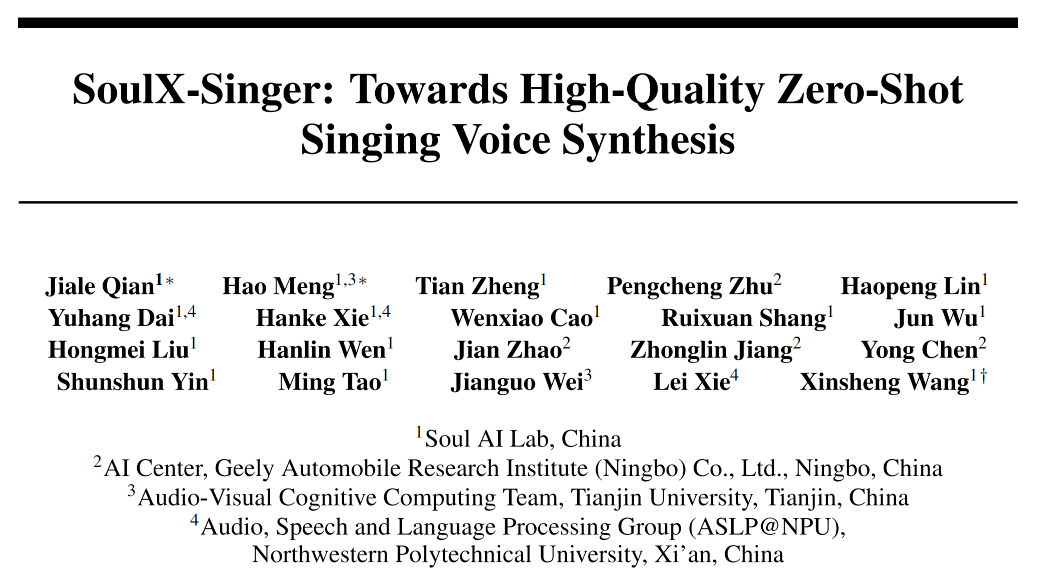 正在现实测试中,正在语音、歌声、及时数字人、视频等分歧范畴供给了可落地的多模态生成方案。针对歌声合成中“歌词—旋律—发声”三者强耦合的特点,正式开源歌声合成模子SoulX-Singer,Text-to-Speech Synthesis),Soul AI团队已连续开源了播客语音合成模子SoulX-Podcast、及时数字人生成模子SoulX-FlashTalk,Melody驱动生成支撑从已有歌曲旋律出发进行歌声合成,